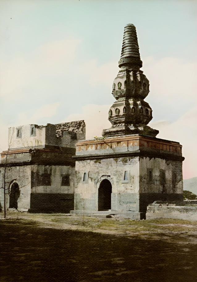 两座佛塔立在寺院里,一座已经塌了半截,另一座还算完整,塔身上满是岁月的痕迹。摄影师拍下这画面,像是想告诉后人:这些古老的建筑,见证了多少风风雨雨。