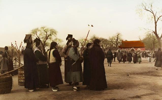 庙会是北京郊区的热闹大事,人头攒动,吆喝声不断。几个满族女子穿着传统长袍,手里攥着红彤彤的山楂串,边走边聊,笑得一脸满足。这些画面被镜头定格,透着股浓浓的生活气息。